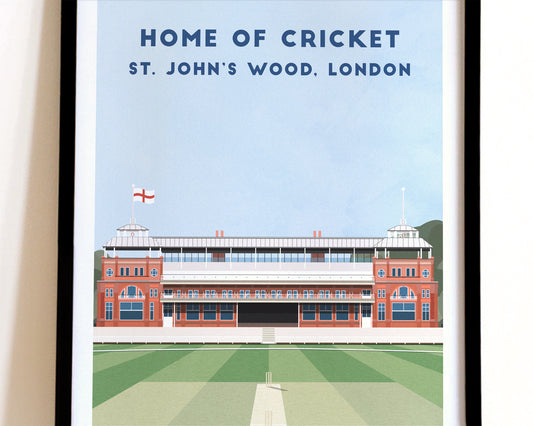 England Cricket Lord's Ground Print - Illustrated Cricket Art Poster