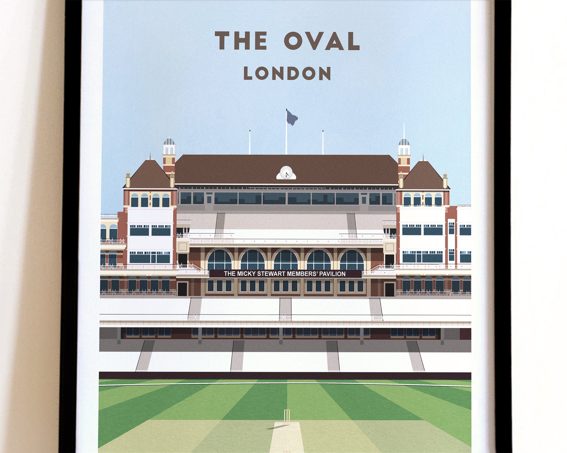 England Cricket The Oval Print - Illustrated Cricket Art Poster