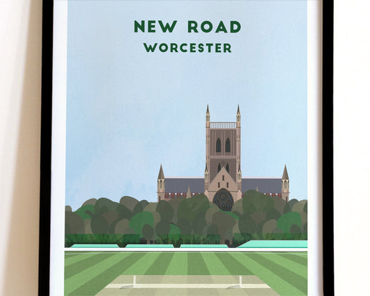 Worcestershire County Cricket New Road Print – Illustrated Cricket Art Poster